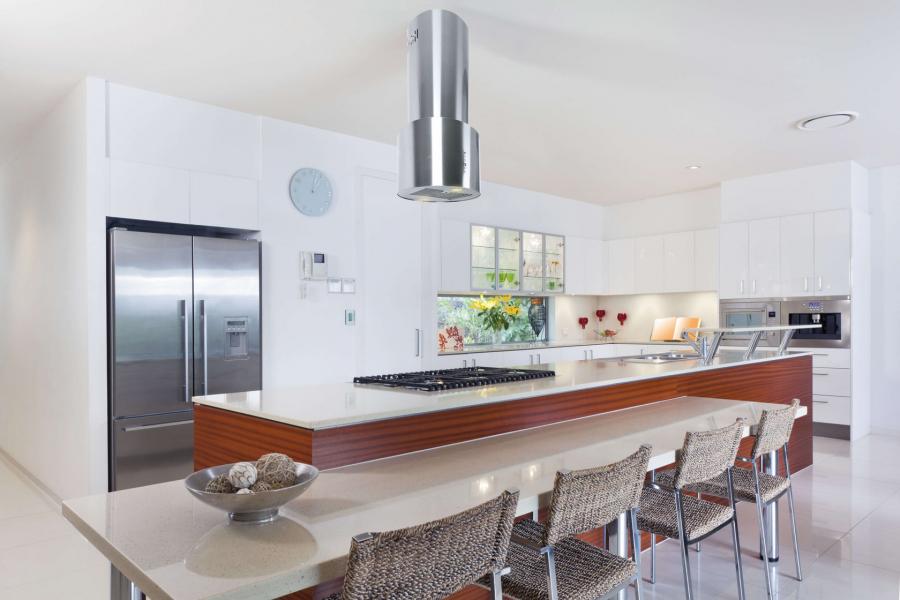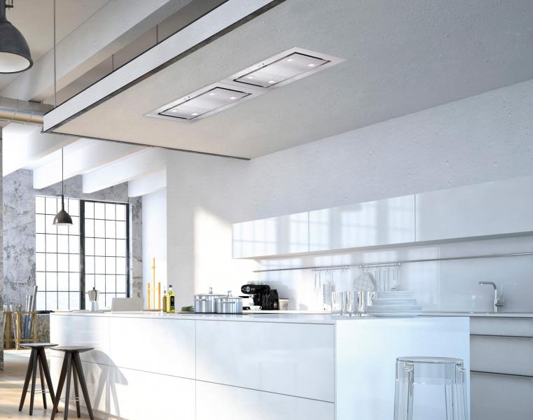 На відміну від острівних моделей, дані моделі вбудовуються в стелю над варильною панеллю. Відмінне рішення для великої кухні поєднаною з вітальнею.