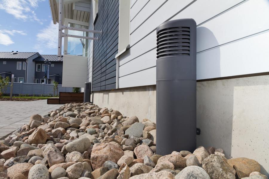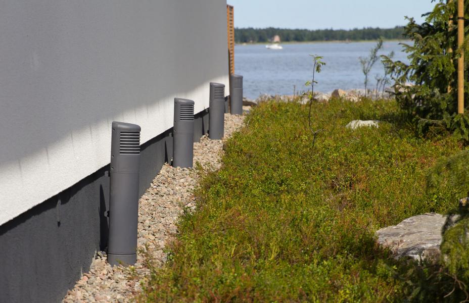Примусове видалення радону за допомогою вентилятора VILPE® і ROSS цокольного дефлектора.